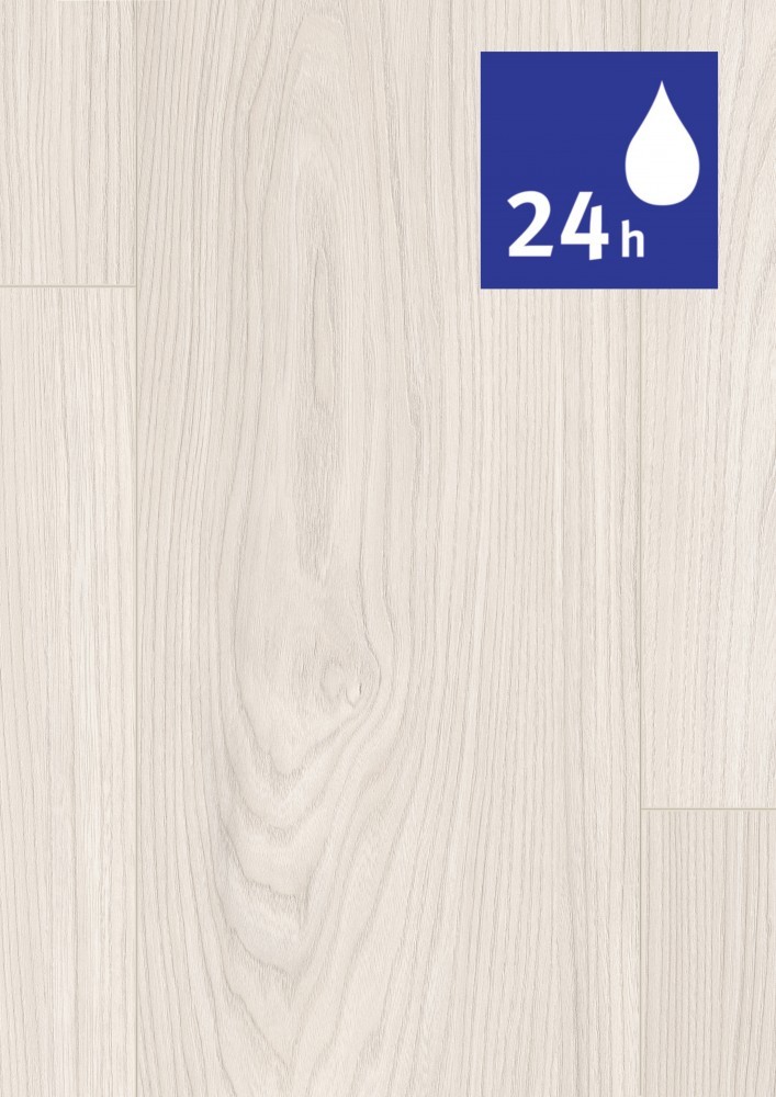 Podlaha v dekore Akácia Sheffield biela v svetlej  farbe pôsobí ľahko a moderne. Tento nadčasový dekor vytvorí pekné kombinácie s neutrálnymi farbami, bielou, kontrastnými farbami alebo dokonca aj s čiernou. Podlahové dosky vo formáte Classic zvýraznia celkový dojem z priestoru. 4- stranné priznané drážky po celom obvode zvýrazňujú vzhľad jednotlivých podlahových dosiek.