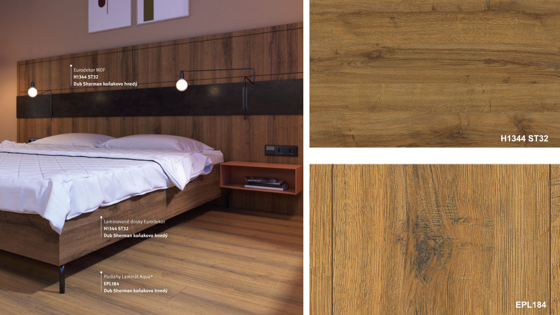 Prezrite si v našej galérii dekory podláh Decor Match, ktoré sú vzájomne zladené s dekoratívnymi materiálmi EGGER. Tieto dekory podláh sú úplne rovnaké ako dekory dekoratívnych materiálov EGGER. Všetky dekoratívne materiály sú označené číslom dekoru ( napr. H3133, a pod.). Drobné odchýlky vo vzhľade dekoru podláh a nábytku sú možné vďaka rôzným povrchovým štruktúram.