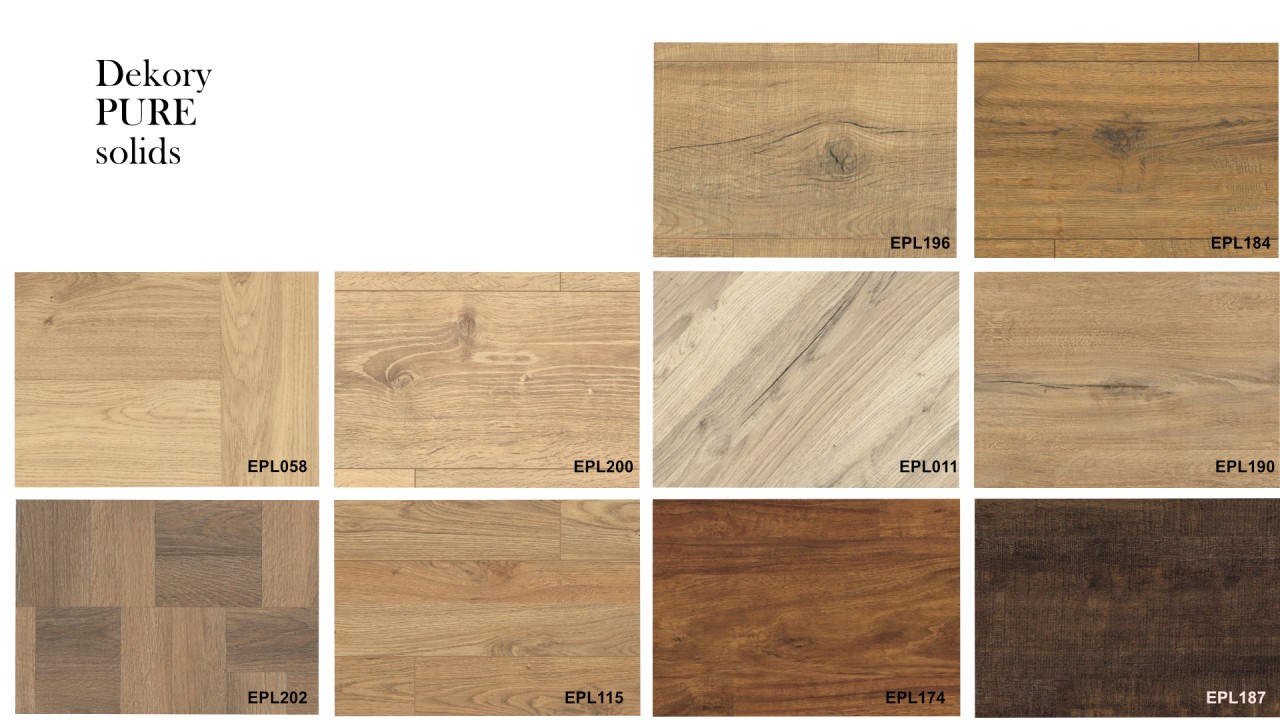 Klasický design, ktorý nevyjde z módy. Dekory so vzhľadom masívneho dreva a parkiet sú populárnym a moderným trendom. Rad Pure solids odráža tento trend a kombinuje vysoko kvalitný a prírodný dizajn s cennými vlastnosťami laminátovej podlahy. Desať autentických dekorov, od elegantných až po výrazné dekory klasických parkiet, podtrhne každú miestnosť. Vďaka piatim rôznym formátom podlahových dosiek môžete dokonale štylizovať malé aj veľké miestnosti. Naše laminátové podlahy sú navyše robustné, univerzálne použiteľné, ľahko sa čistia a inštalujú. Vychutnajte si kvalitu podláh EGGER pri každom kroku.