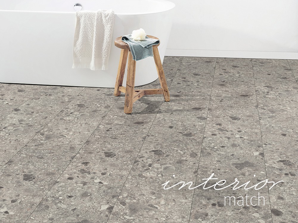 Vodeodolná podlaha z rady Laminát Aqua+ vás zaujme svojou kvalitou a štýlom. Triestino Terrazzo sivé napodobňuje vzhľad dlažby z prírodného kameňa. Vďaka podlahovým doskám vo formáte Kingsize môže tento dekor naplno rozvinúť svoj krásny vzhľad. Podlaha má priznanú drážku 4V+1. Skosené hrany sú po celom obvode lamely, čím sa zvýrazňuje vzhľad jednotlivých podlahových dosiek a zároveň je stredom lamely vedená ďalšia reálna drážka, ktorá dodáva podlahe vzhľad dlažby. Tento dekor je súčasťou konceptu Interior match. Je dekorovo zhodný s nábytkovým dekorom F021 ST75 z Kolekcie dekoratívnych materiálov EGGER.